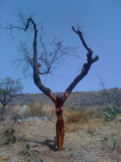 Deze zomer hadden wij het geluk dat Niel op onze camping verbleef en gewapend met kettingzaag een prachtig beeld uit een van onze oude en dode amandelbomen maakte!
