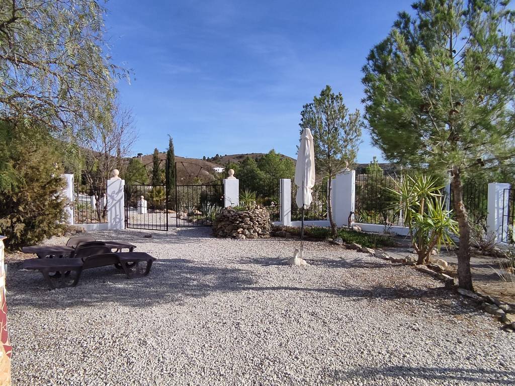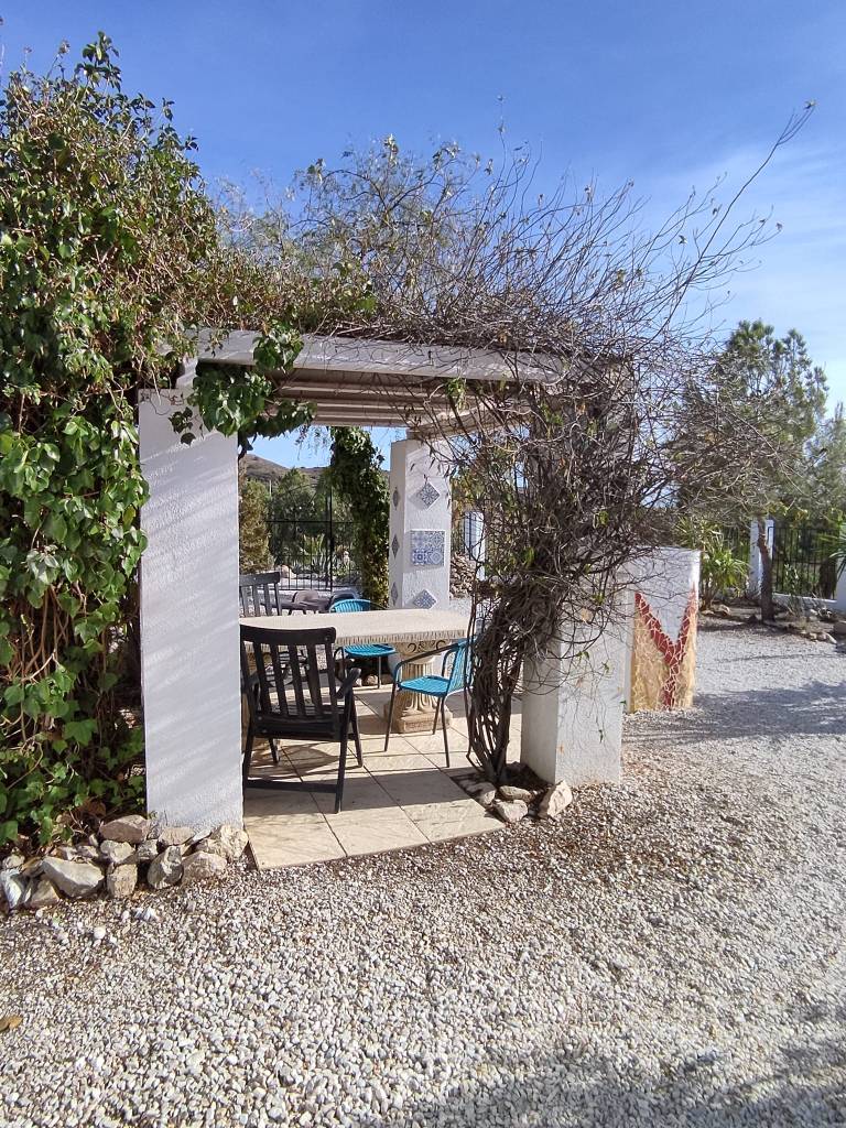 Casa Budha is a small studio with toilet, storage space for clothes, a double bed with tv set up with many international channels, large private garden with terrace and great view, lots of privacy, outdoor bed, outdoor solar shower, chairs and table outside and lovely sunbeds and garden chairs…. Inside a kitchen with everything to cook and eat, dining table with two chairs and of course equipped with towels and beds made on arrival and a delicious drink in the fridge…