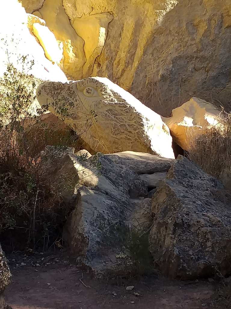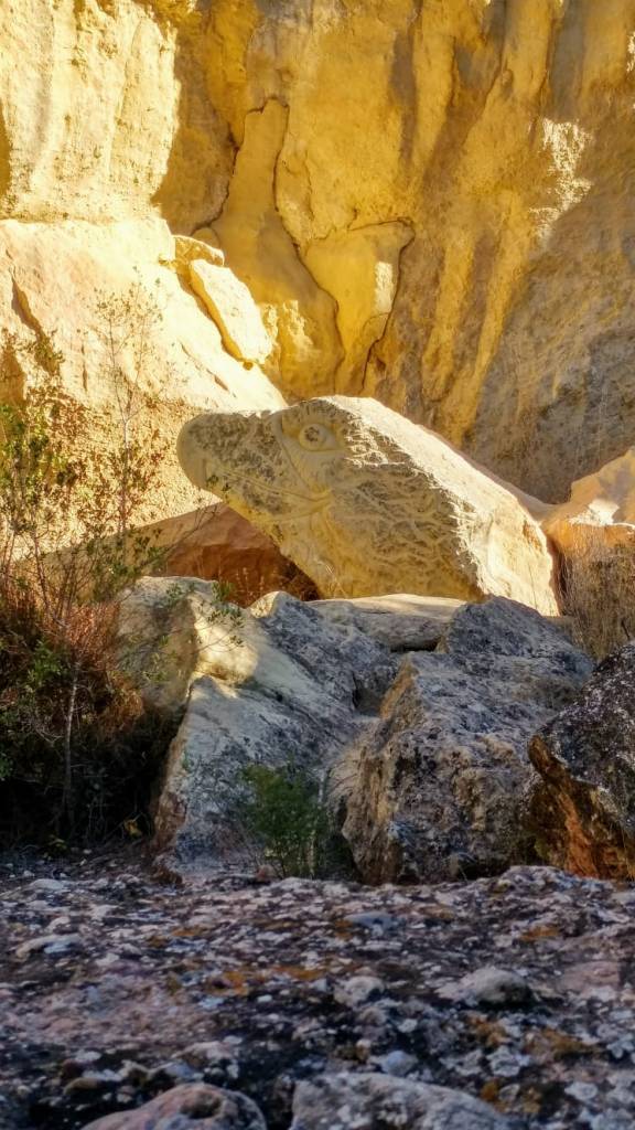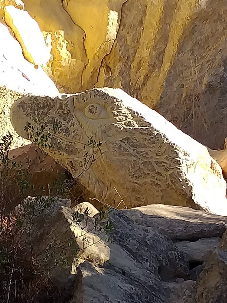 Na een paar weken wandelen vanaf de camping, waar we overigens zeer van genoten hebben ( je vergeet soms hoe mooi je eigen omgeving is en ik was dat zeker vergeten!), konden we vandaag binnen Murcia erop uit en de eerste keus is dan toch vaak de kloof in Aledo. Het was prachtig weer, zonnig en warm en de wind was gelukkig gaan liggen. Onderaan het trappetje zagen we een leuk drakenhoofd! Super leuk dat mensen de tijd nemen de omgeving zo op te leuken… Wie weet zit het er al jaren en hebben we het gewoon nooit gezien. We hebben eerst de wandeling gelopen en dan de avontuurlijke variant door de bramenstruiken en toen zijn we ook nog de kloof in gegaan. Hij stond jammer genoeg redelijk vol water en de mannen zijn terug gegaan, maar Carolien en ik hebben geklommen en hebben de kloof bedwongen! Wat was het leuk! Kortom, heerlijke dag!