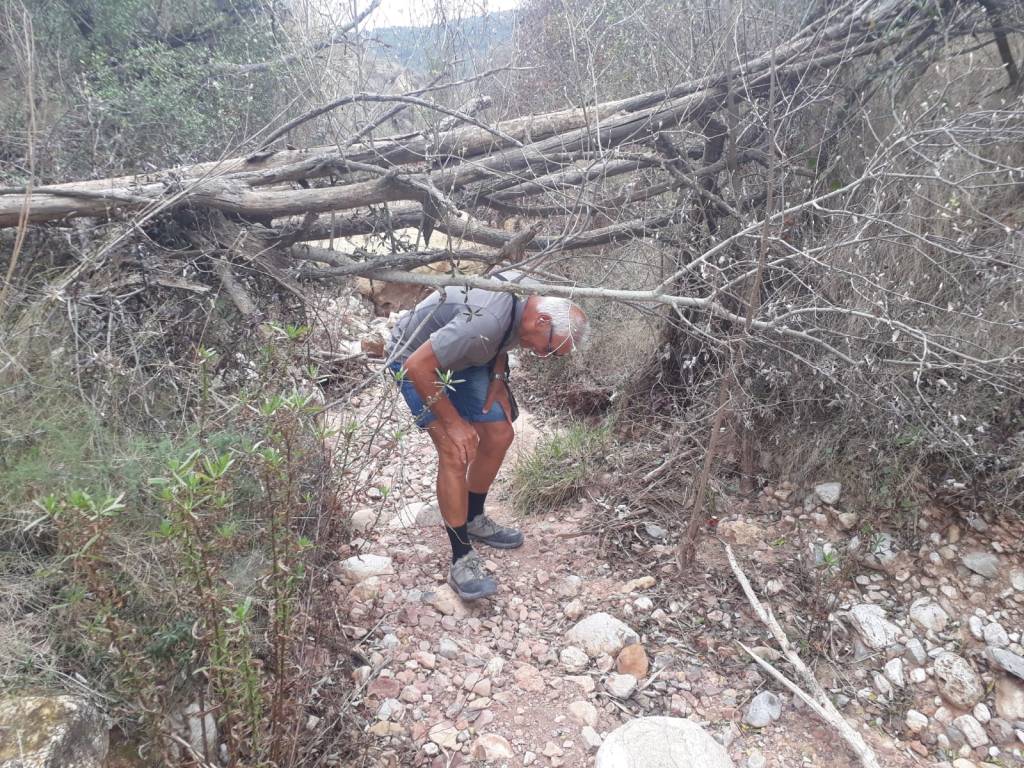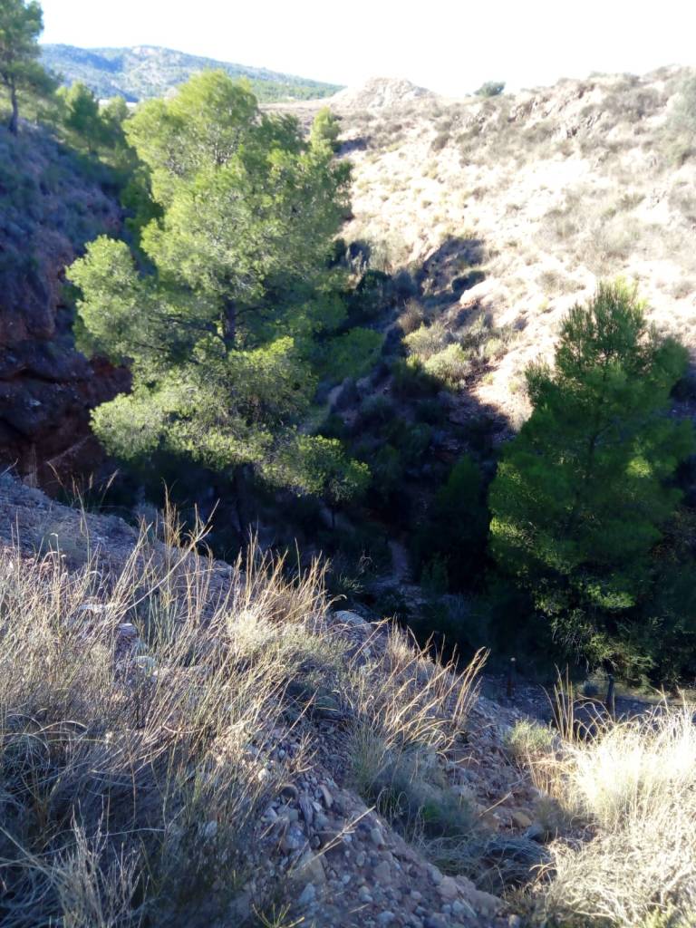 Een dag na het losbarsten van het carnaval in heel veel plekken in Murcia togen we omdat het een winderige dag zou worden, naar de beschutte kloof van Aledo. De kloof was droog, dus we konden eindelijk weer eens met droge voeten door de kloof omhoog klauteren.
