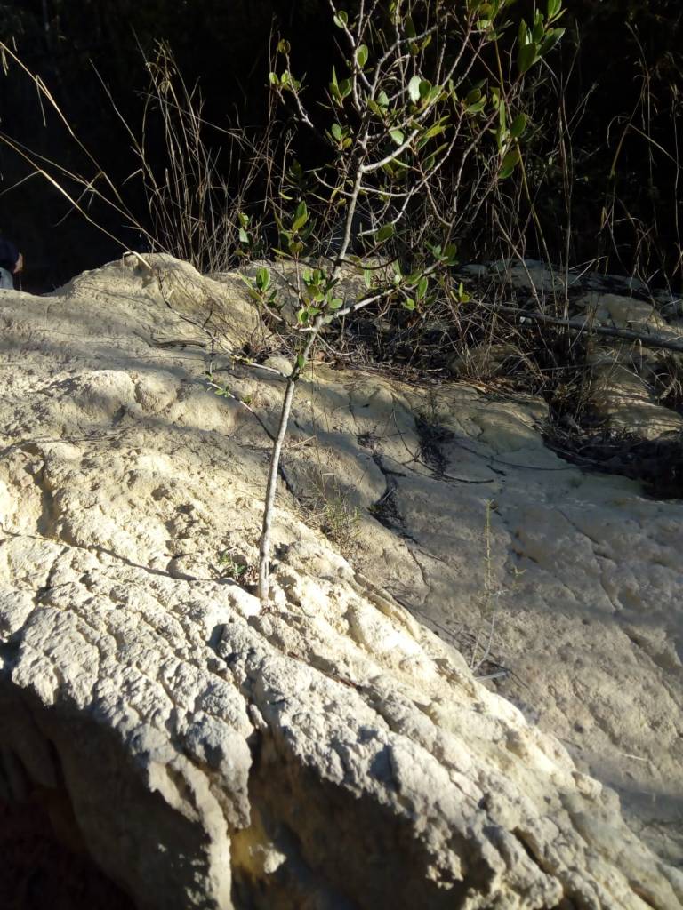 Bijna iedereen is naar boven geklommen al dan niet met behulp van het touw van Peter. Het was al een beetje voorjaar in deze omgeving met een hele voorzichtige voorjaarsbloei.
