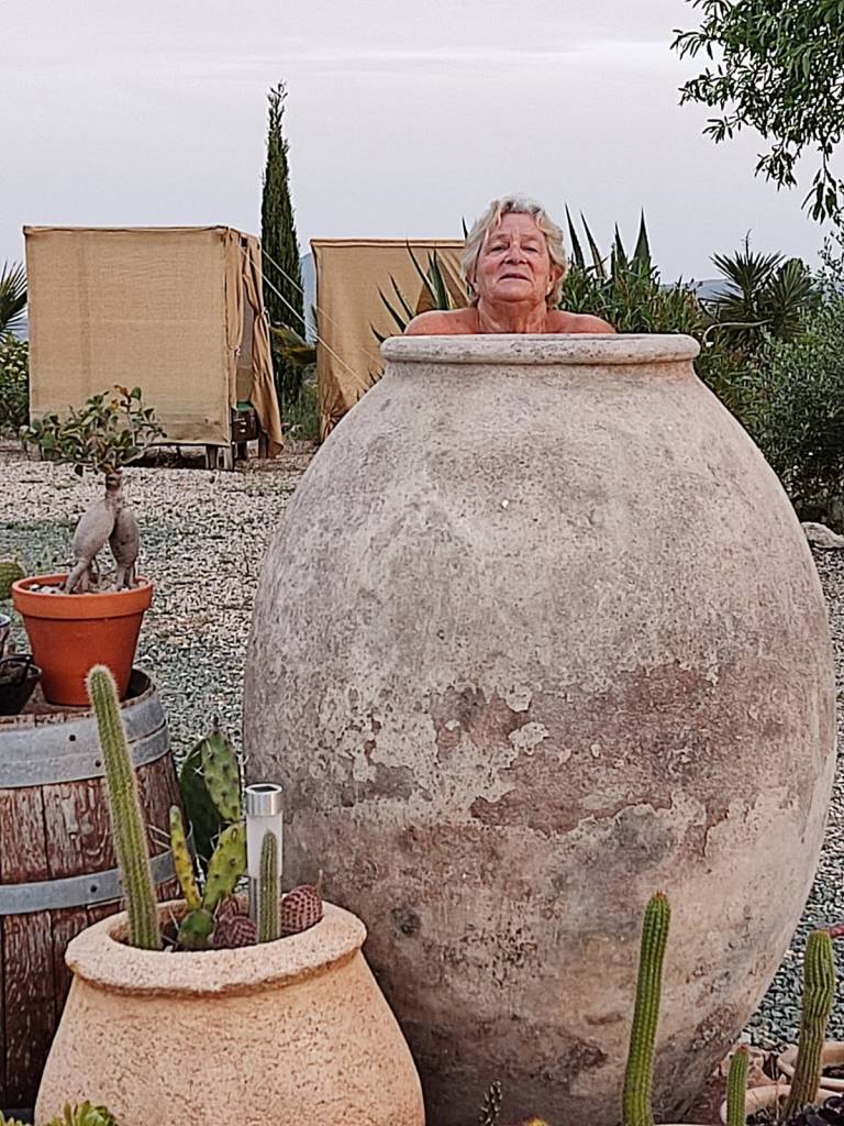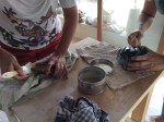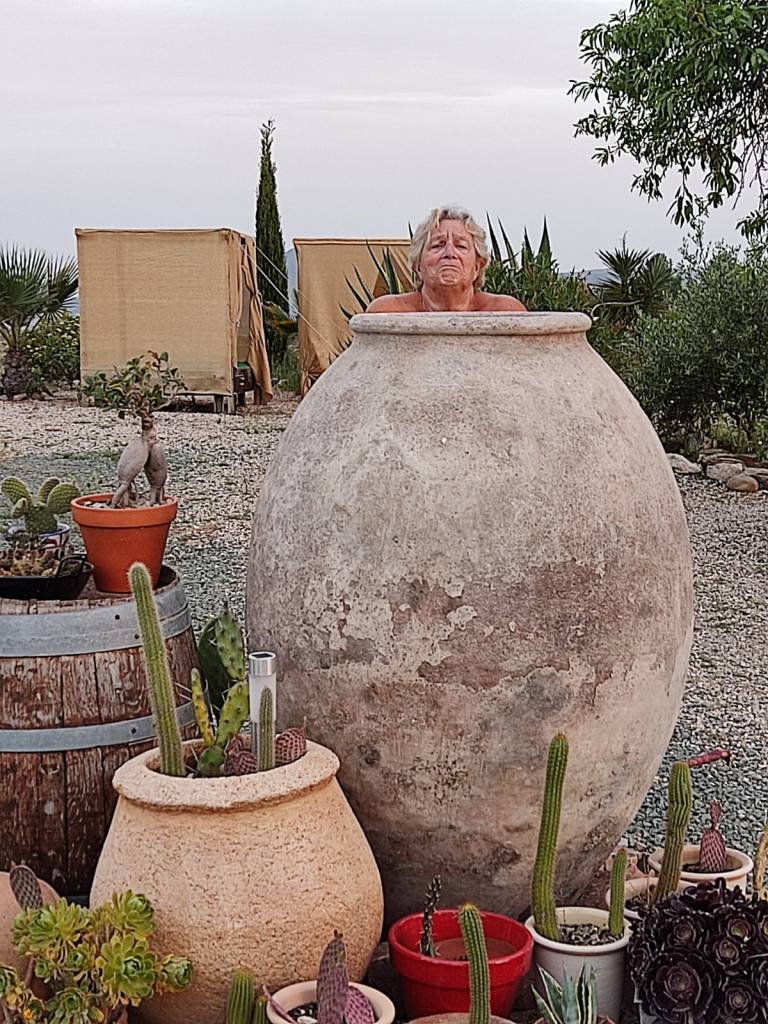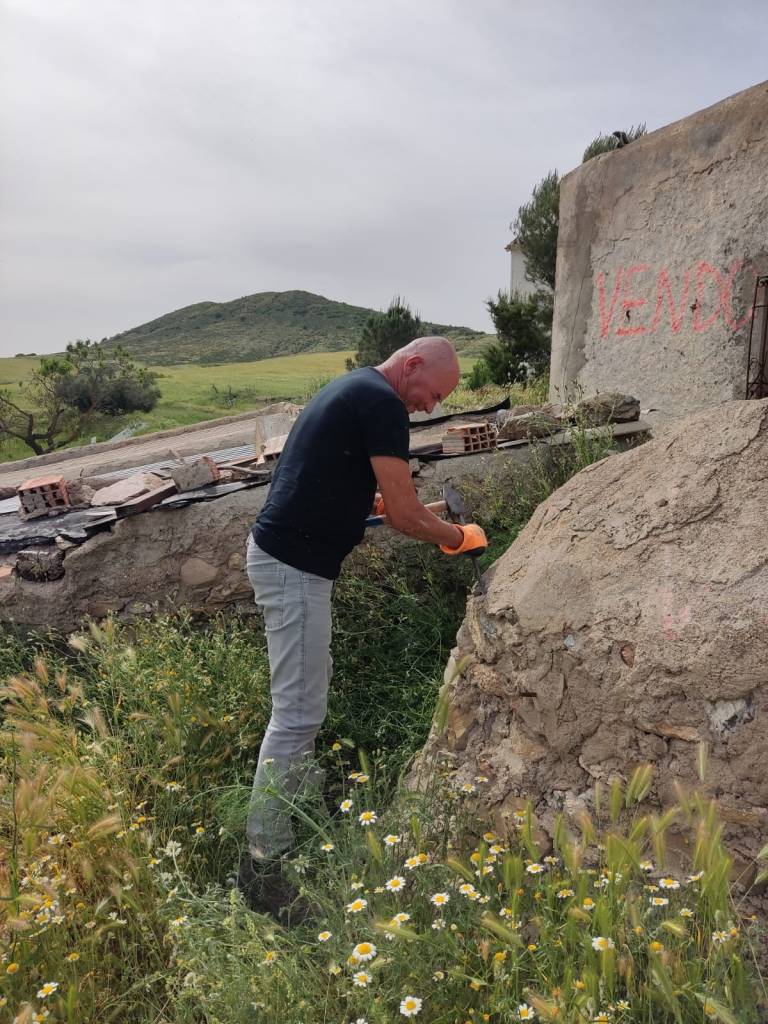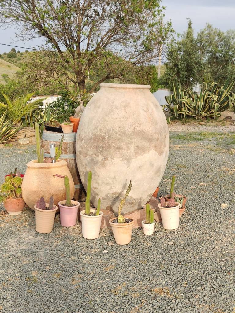 Denise had een leuke pot (een oude tinaja) gezien op facebook. Net voordat we aankwamen bij de cortijo zei de verkoper dat we hem nog wel even uit moesten graven…geen probleem dachten we, een beetje hakken doen we wel vaker .. er zat echter nog een cementen ring om. Die heeft Wil weggehakt met veel geduld. Ad heeft een pot die er al stond voordat de muren gemetseld waren doormidden moeten slijpen. Kortom enerverende zondagmiddag… Bedankt lieve mensen wederom ..