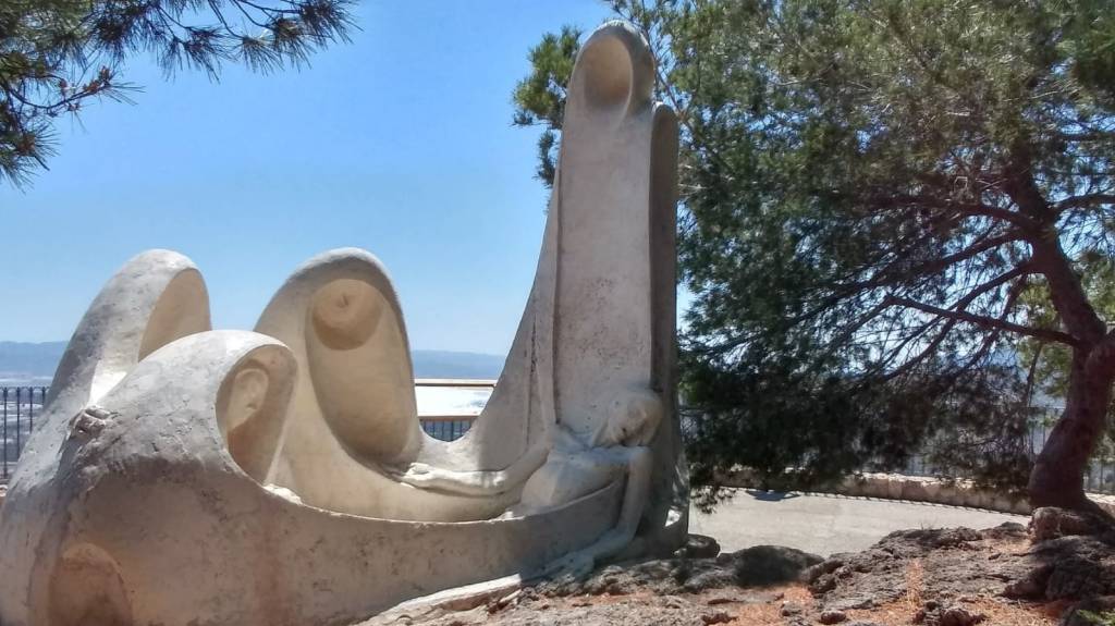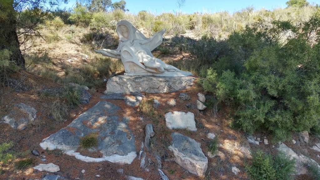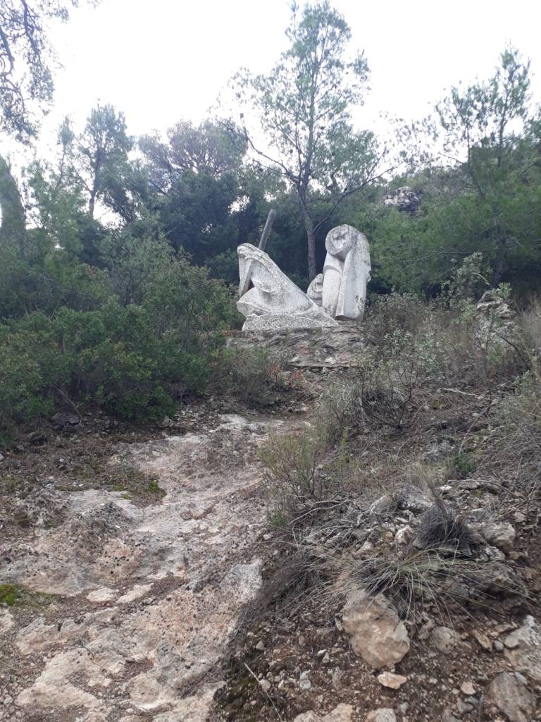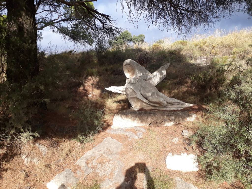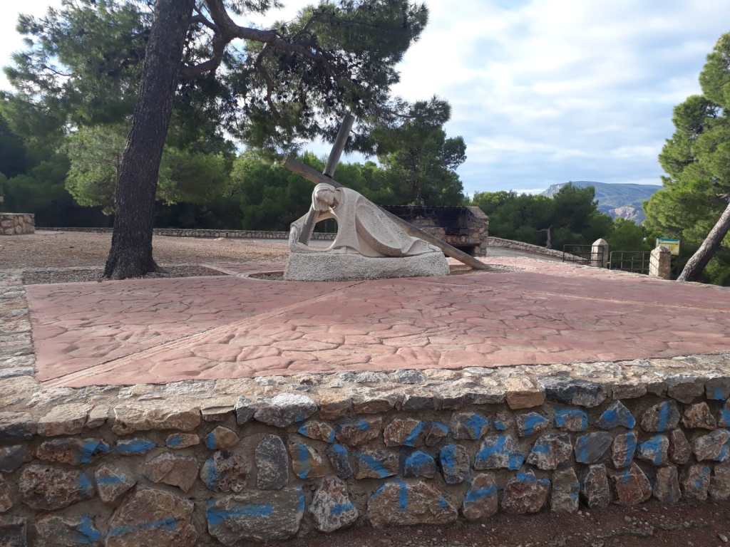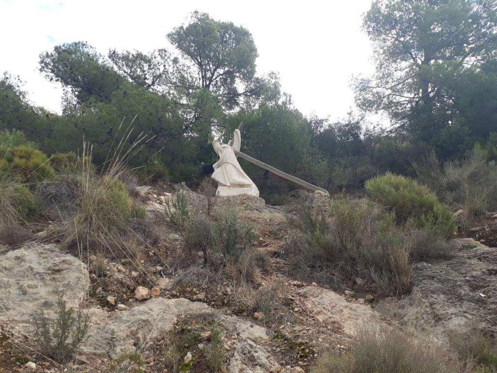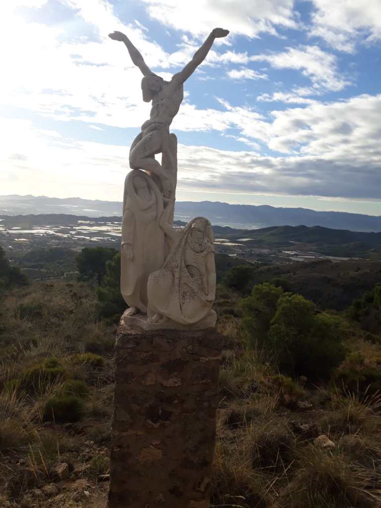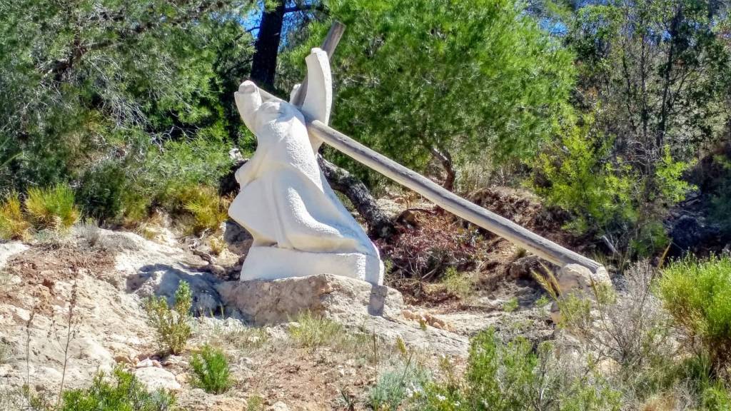 Vanaf het klooster loopt een weg omhoog naar het Jezus beeld, kan ook met de auto maar natuurlijk hebben wij gewandeld langs de 14 staties, witte beelden, van de lijdensweg van Jezus Christus. De staties verbeelden de lijdensweg van Jezus Christus vanaf het gerechtsgebouw, het paleis van Pontius Pilatus, tot op de heuvel Golgotha, de plaats van zijn kruisiging. In de RK kerk worden op Goede Vrijdag de staties gebeden. Naar het Jezusbeeld is het 1800 meter lopen.