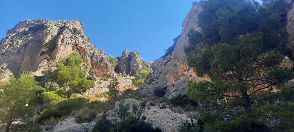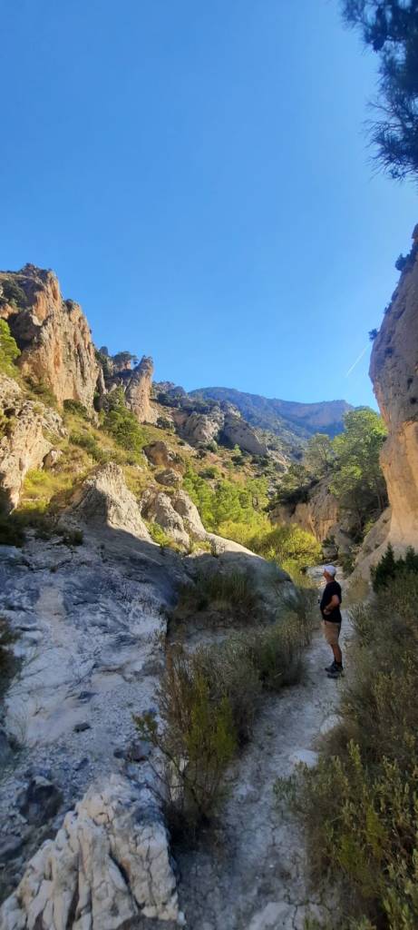 Op een nog steeds zeer warme zaterdag zijn we op zoek gegaan naar deze prachtige wandeling. Ik had mazzel, zat super chill in de buggy met Mister M., heel erg gaaf. Na een prachtige rit door het prachtige natuurpark en langs de marmergroeves kwamen we aan bij de dam van Valdeifierno. Daar eerst de trappen af, de kloof in, op zoek naar het water van de Rio Luchena.