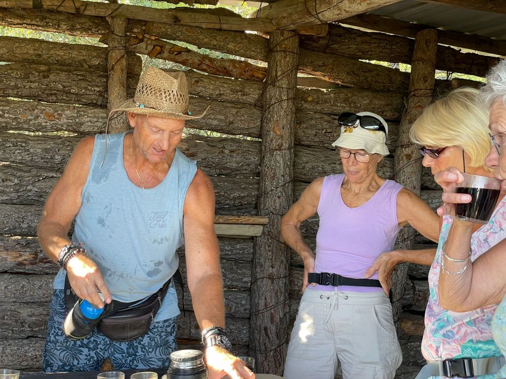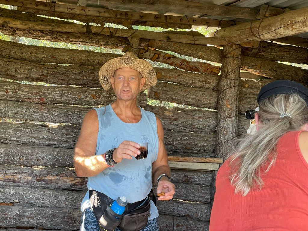 Dan bij de jachthut zelf nog een bakkie van Peet en weer naar beneden door het bos.