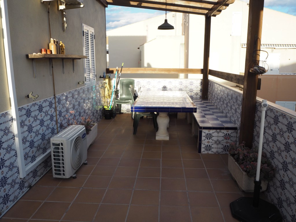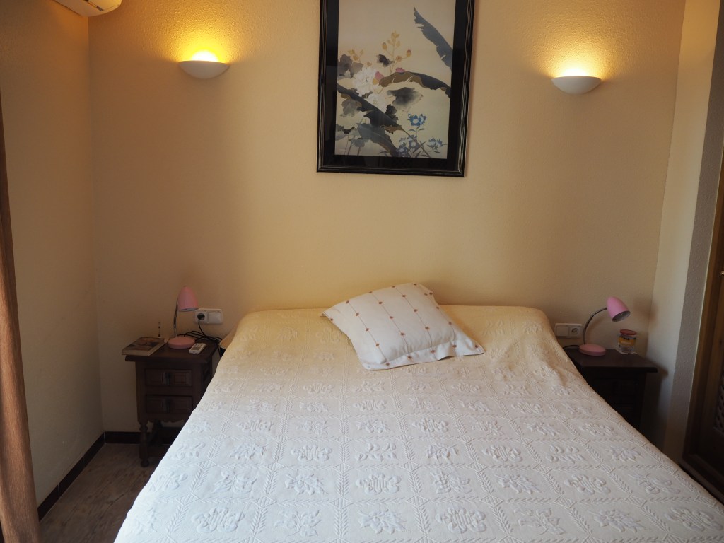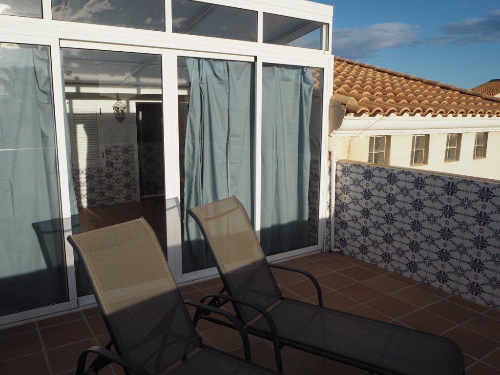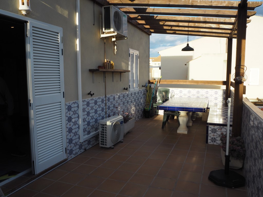 Op de bovenverdieping vind je de badkamer, twee grote tweepersoons slaapkamers en twee prachtige terrassen. Eén daarvan is bijzonder groot, met een eettafel en comfortabele ligbedden voor de perfecte momenten van ontspanning. Alle kamers zijn uitgerust met airconditioning en het appartement heeft bovendien een eigen overkapte parkeerplaats.