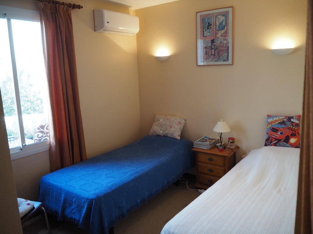 De tweede slaapkamer heeft twee grote losse bedden.